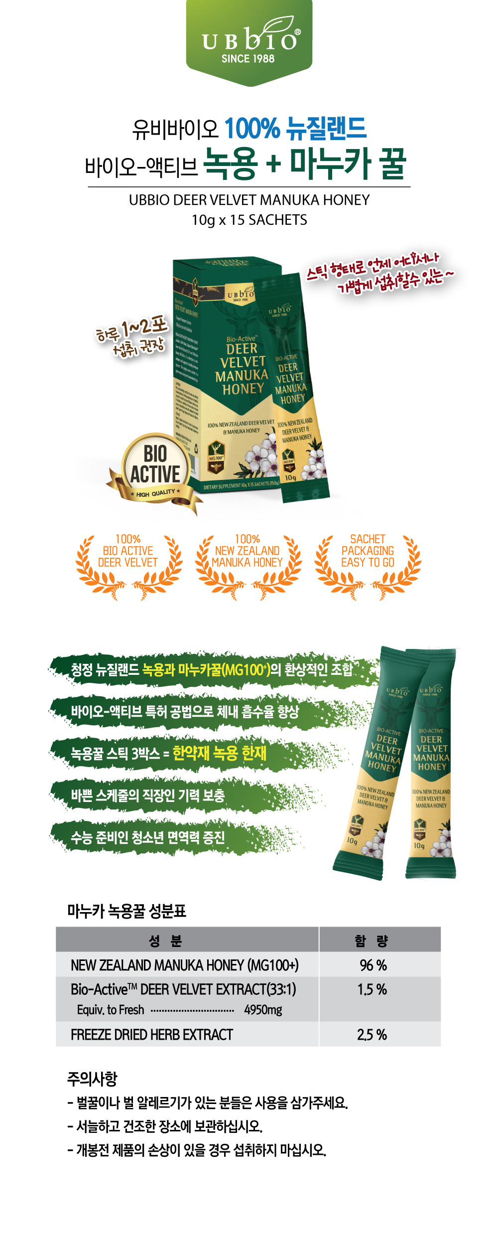 [유비바이오]바이오액티브 마누카 녹용꿀 스틱 15포