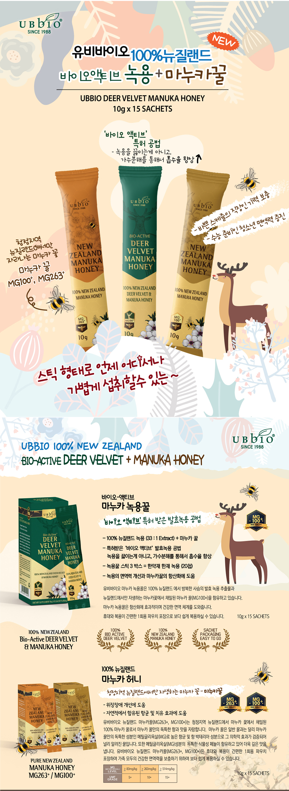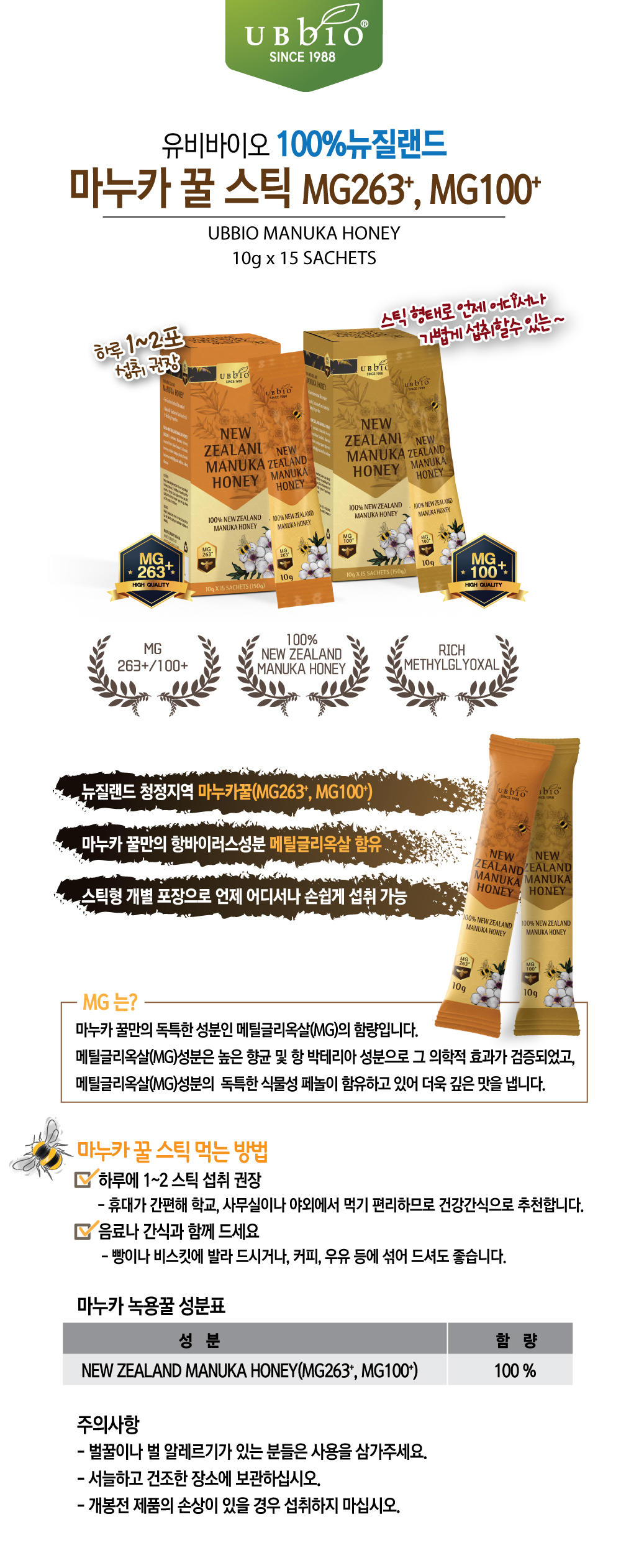 [유비바이오]뉴질랜드 마누카 꿀스틱 MG100+ 15포