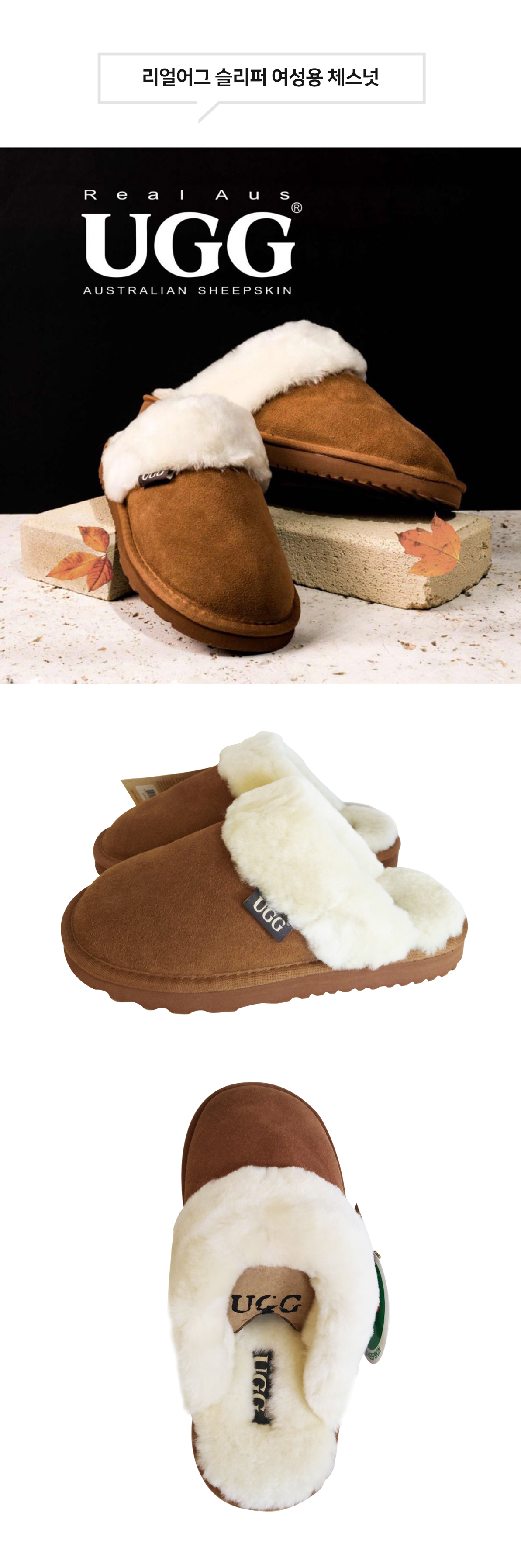 [리얼어그] 호주정품 UGG 양모 양털 어그 슬리퍼 여성용 체스넛