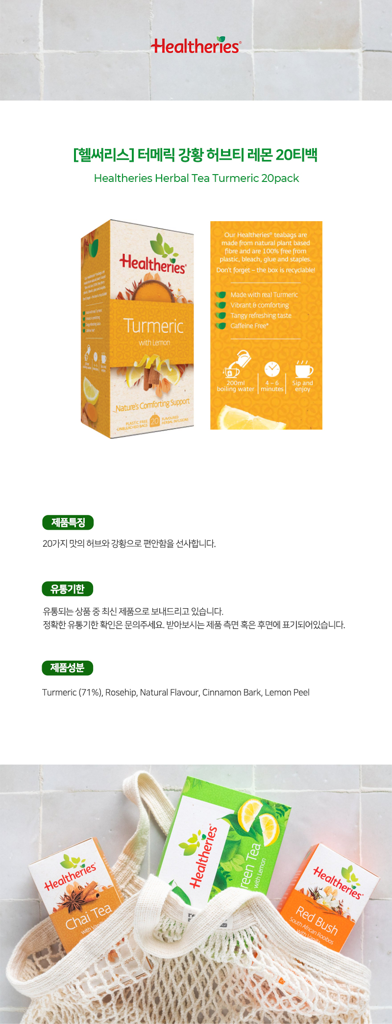 [헬써리스] 터메릭 강황 허브티 레몬 20티백X4ON SALE