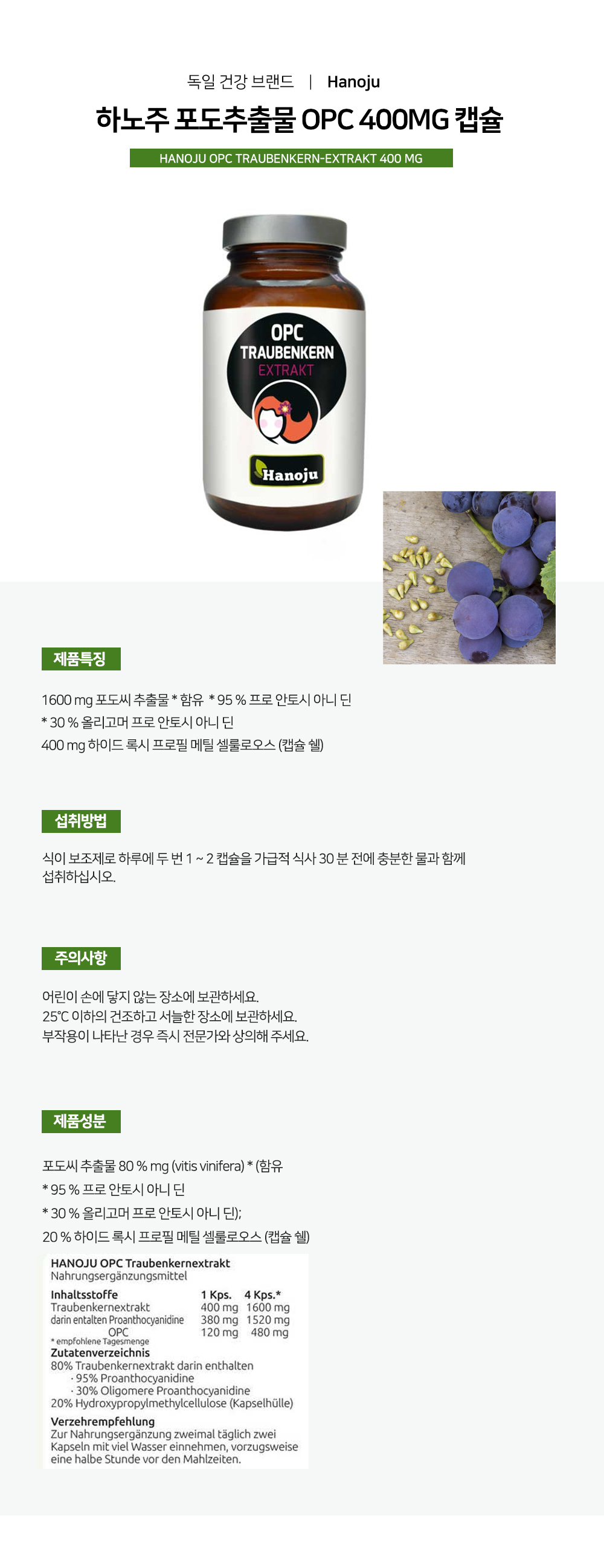 Hanoju 하노주 포도추출물 OPC 400mg 캡슐