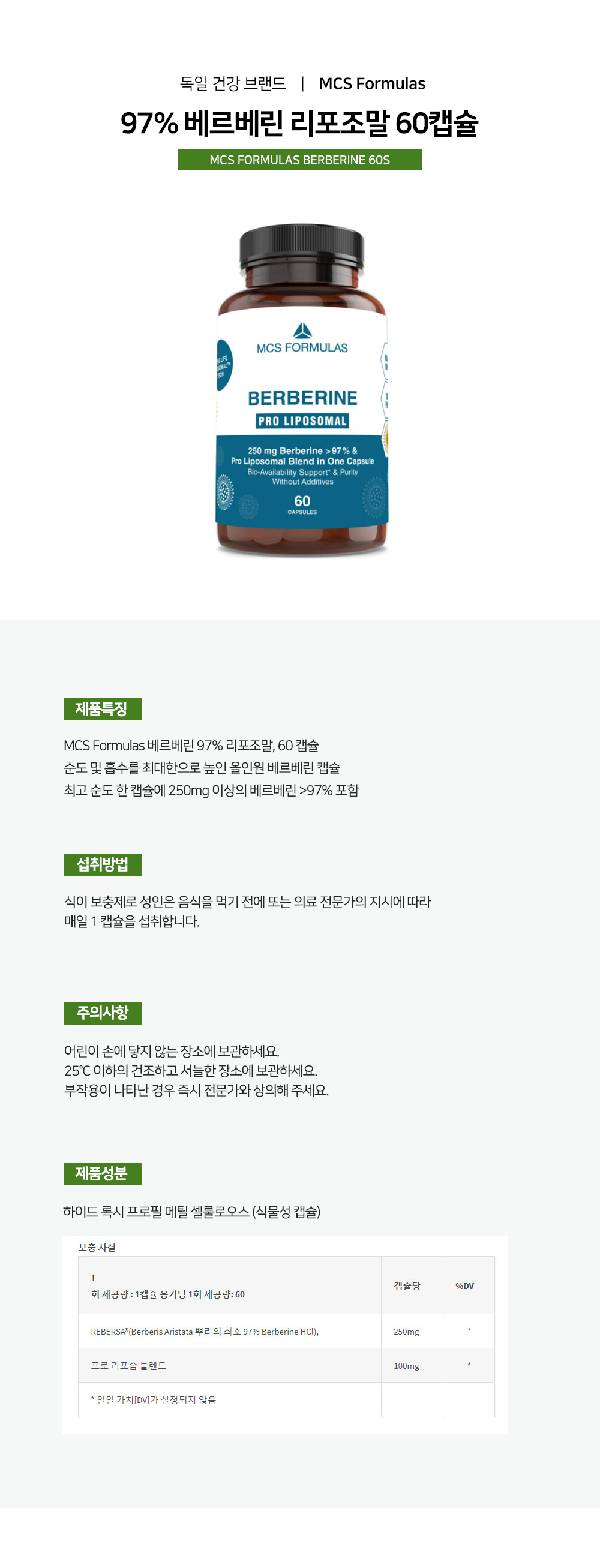 MCS Formulas 97% 베르베린 리포조말 60캡슐