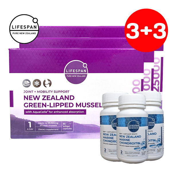 [특가] 라이프스팬 아쿠아셀 초록입홍합 25000 90정X3개+콘드로이친 60정X3개