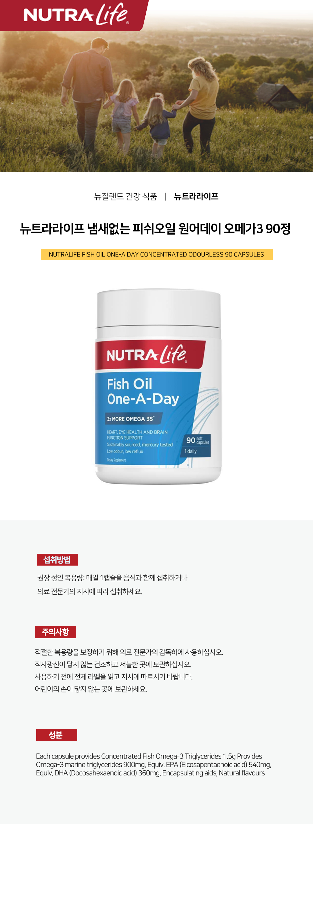 뉴트라라이프 냄새없는 피쉬오일 원어데이 오메가3 90정