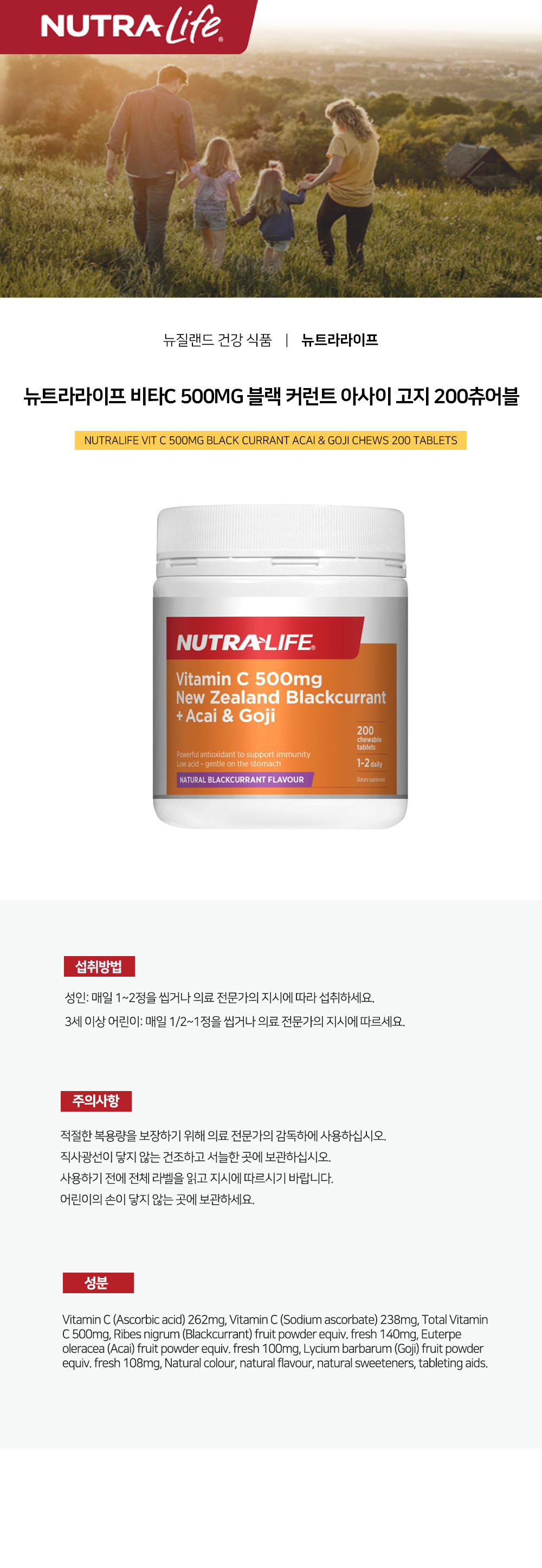 뉴트라라이프 비타C 500mg 블랙 커런트 아사이 고지 200츄어블ON SALE