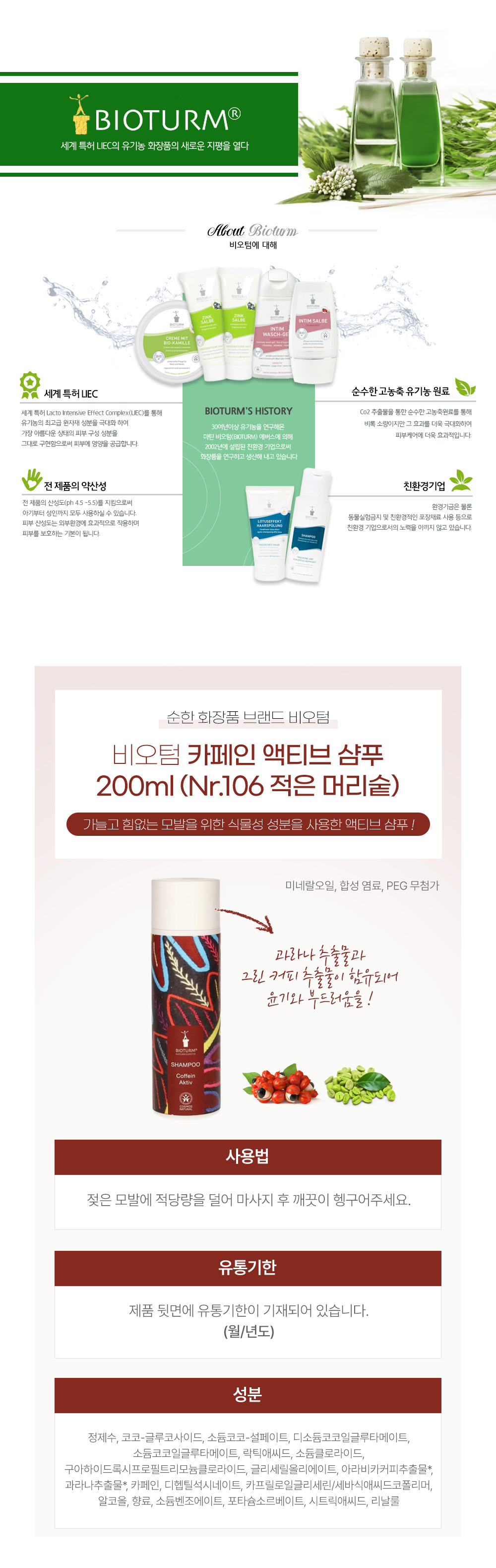비오텀 카페인 액티브 샴푸 200ml (Nr.106 적은 머리숱) X3개
