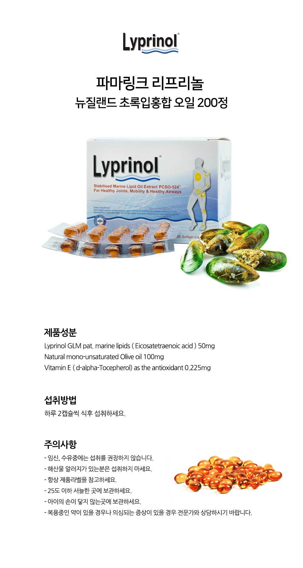 파마링크 리프리놀 뉴질랜드 초록입홍합 오일 200캡슐ON SALE
