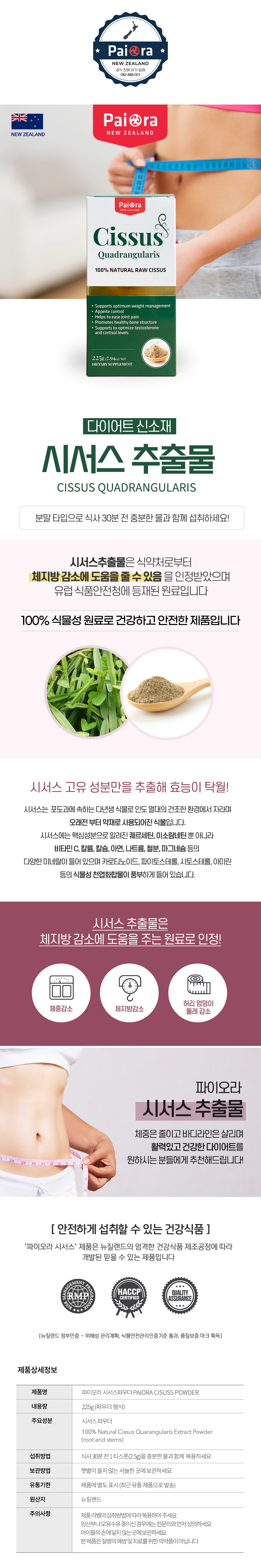 파이오라 뉴질랜드 시서스 파우더 225g+시서스 10정 추가증정