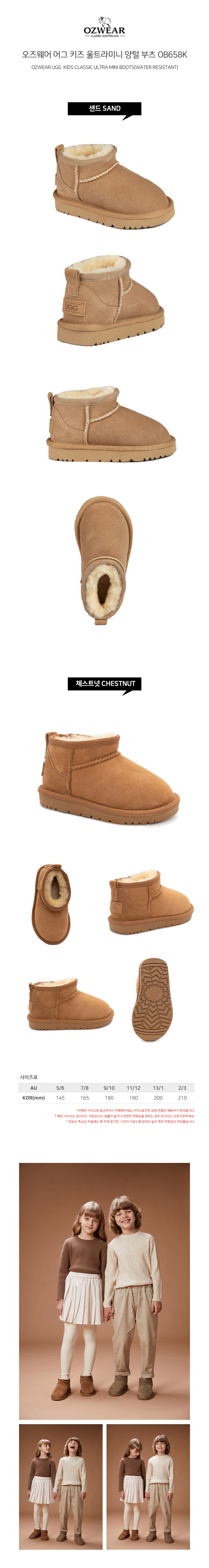 오즈웨어 호주어그 키즈 울트라클래식 미니부츠 방수 양털 부츠 OB658K