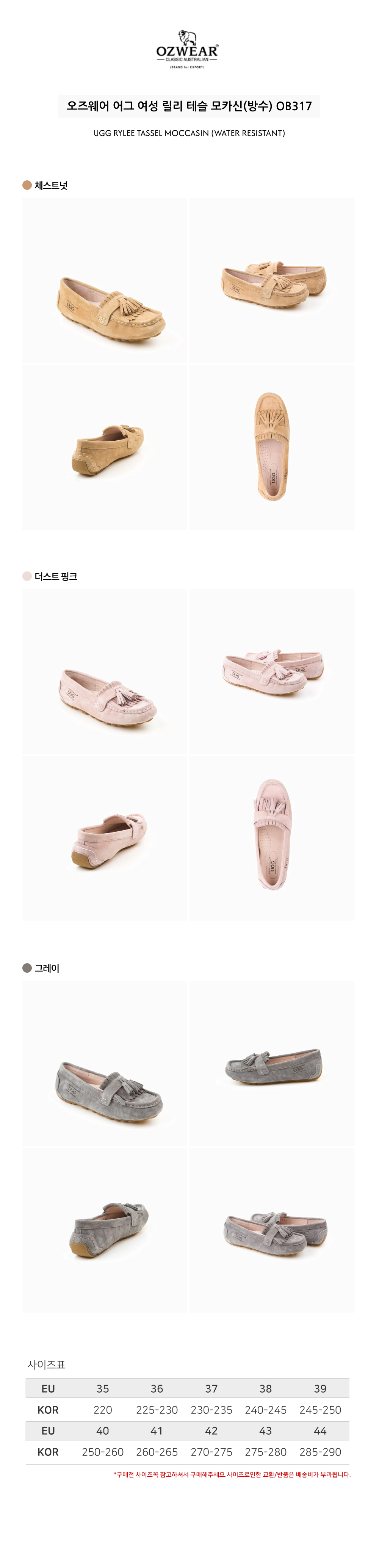 오즈웨어 어그 여성 릴리 테슬 모카신(방수) OB317