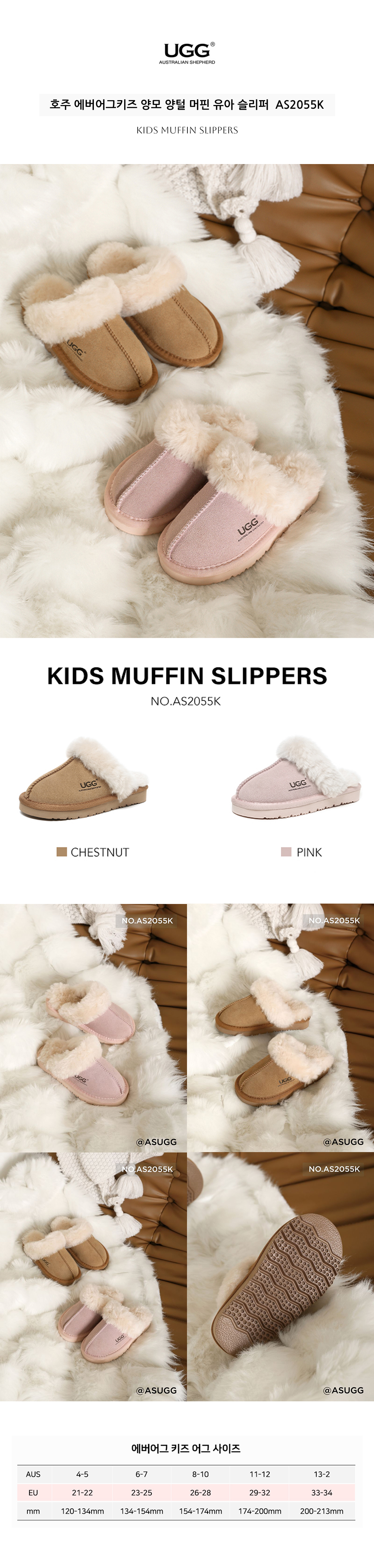 호주 에버어그키즈 양모 양털 머핀 유아 슬리퍼 AS2055K