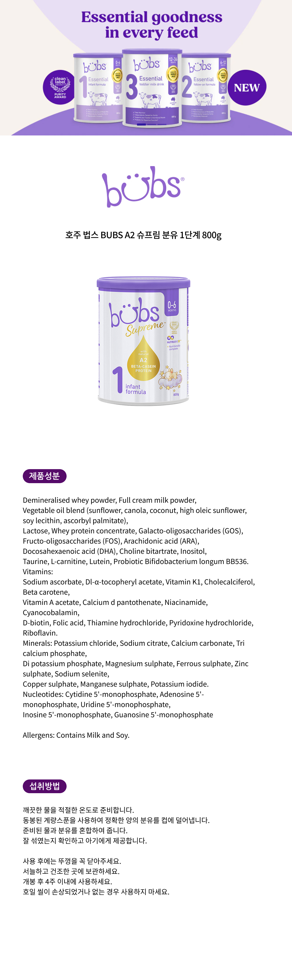 호주 법스 BUBS A2 슈프림 분유 1단계 800g