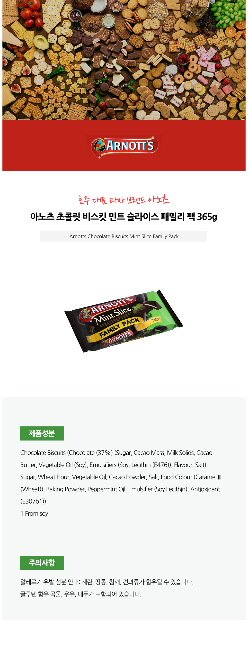 아노츠 초콜릿 비스킷 민트 슬라이스 패밀리 팩 365g X3개