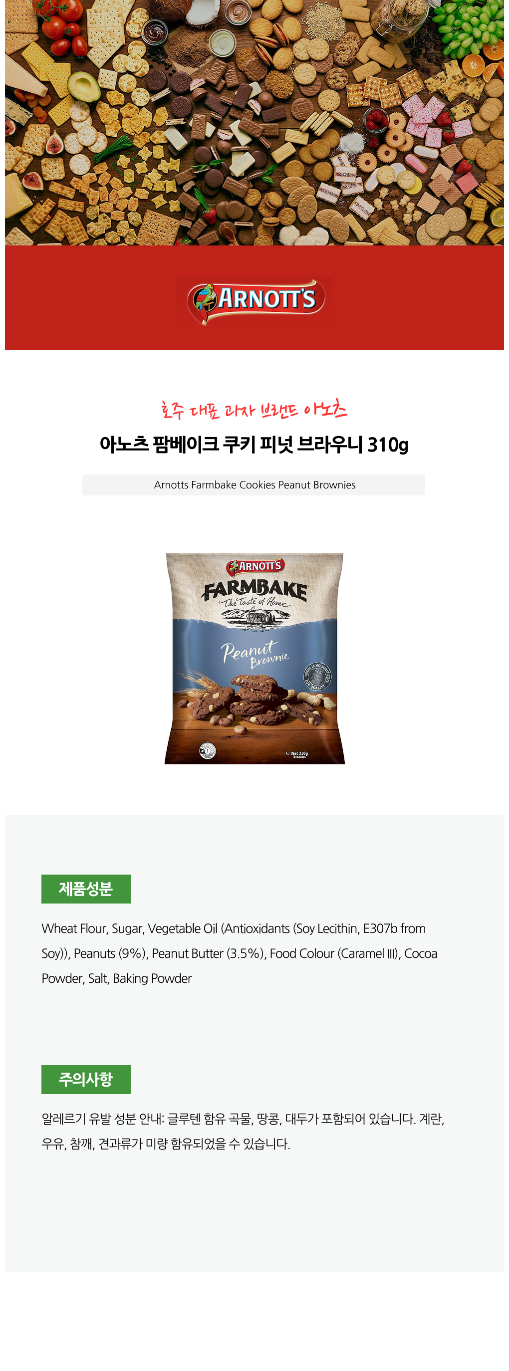 아노츠 팜베이크 쿠키 피넛 브라우니 310g X3개