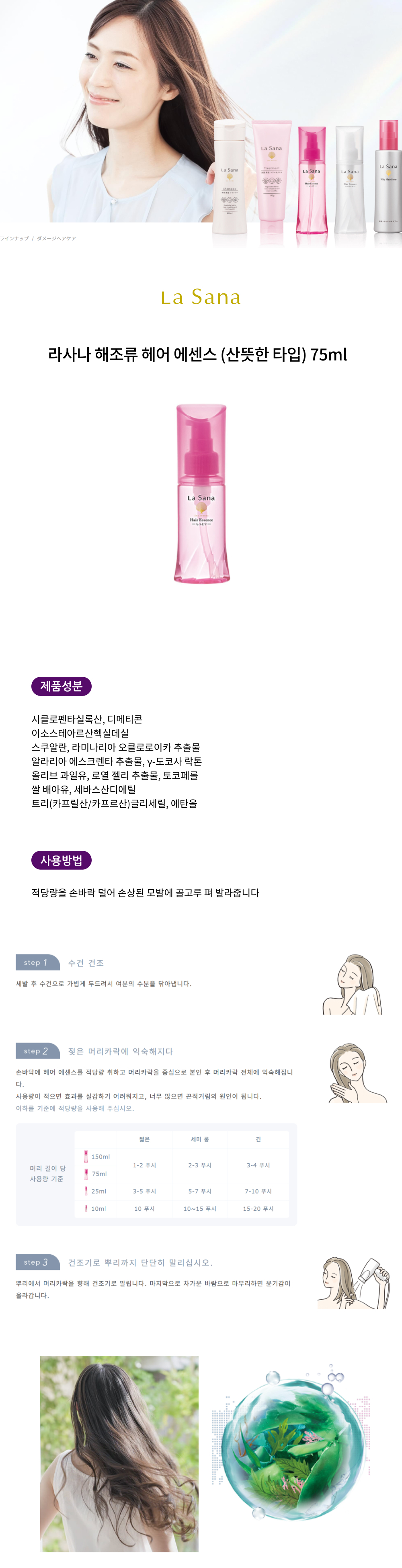 라사나 해조류 헤어 에센스 (산뜻한 타입) 75ml