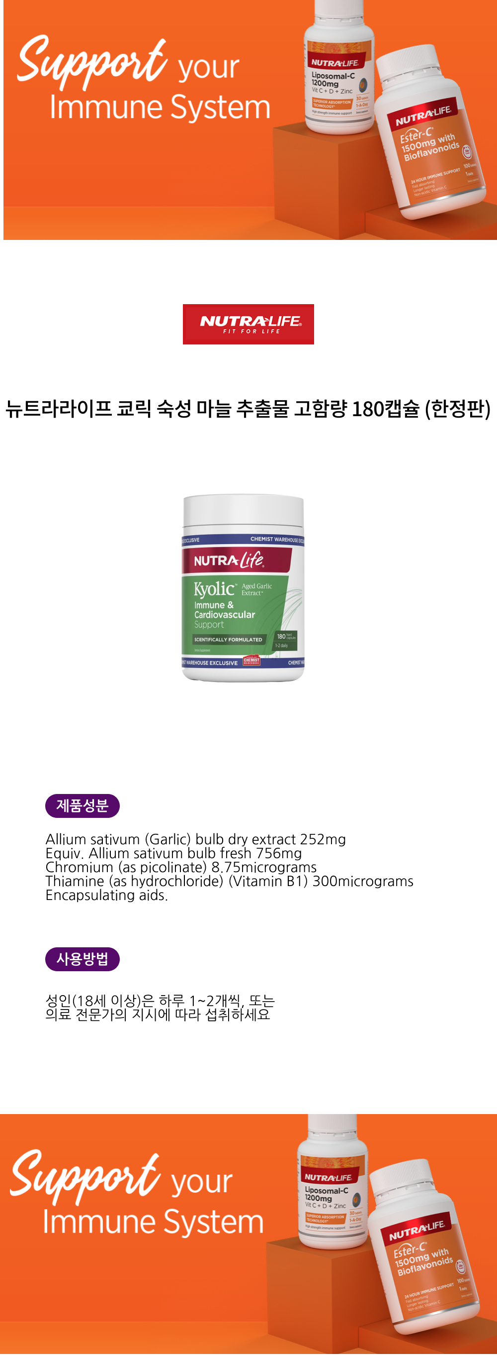 뉴트라라이프 쿄릭 숙성 마늘 추출물 고함량 180캡슐 (한정판)ON SALE