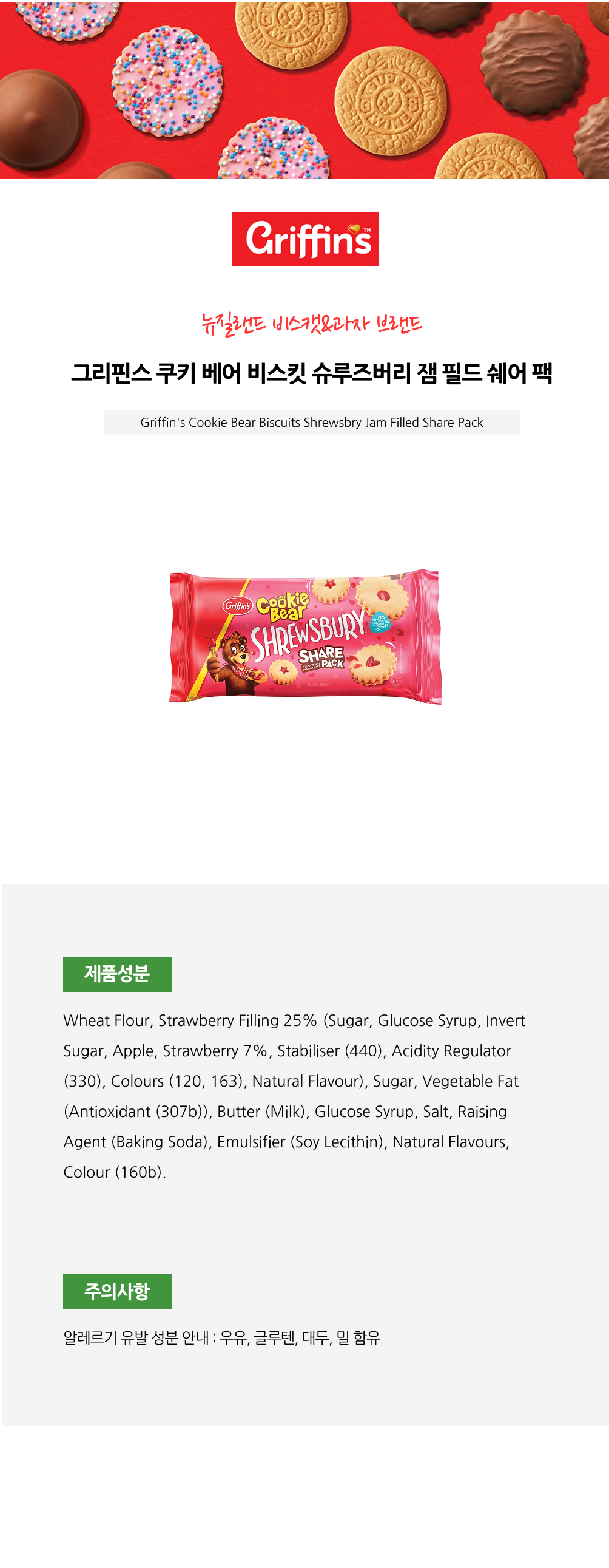 그리핀스 쿠키 베어 비스킷 슈루즈버리 잼필드 쉐어팩X6개ON SALE