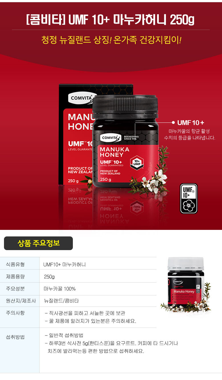 [명절특가] 2+1 콤비타 뉴질랜드 마누카꿀 UMF10+ 250gON SALE