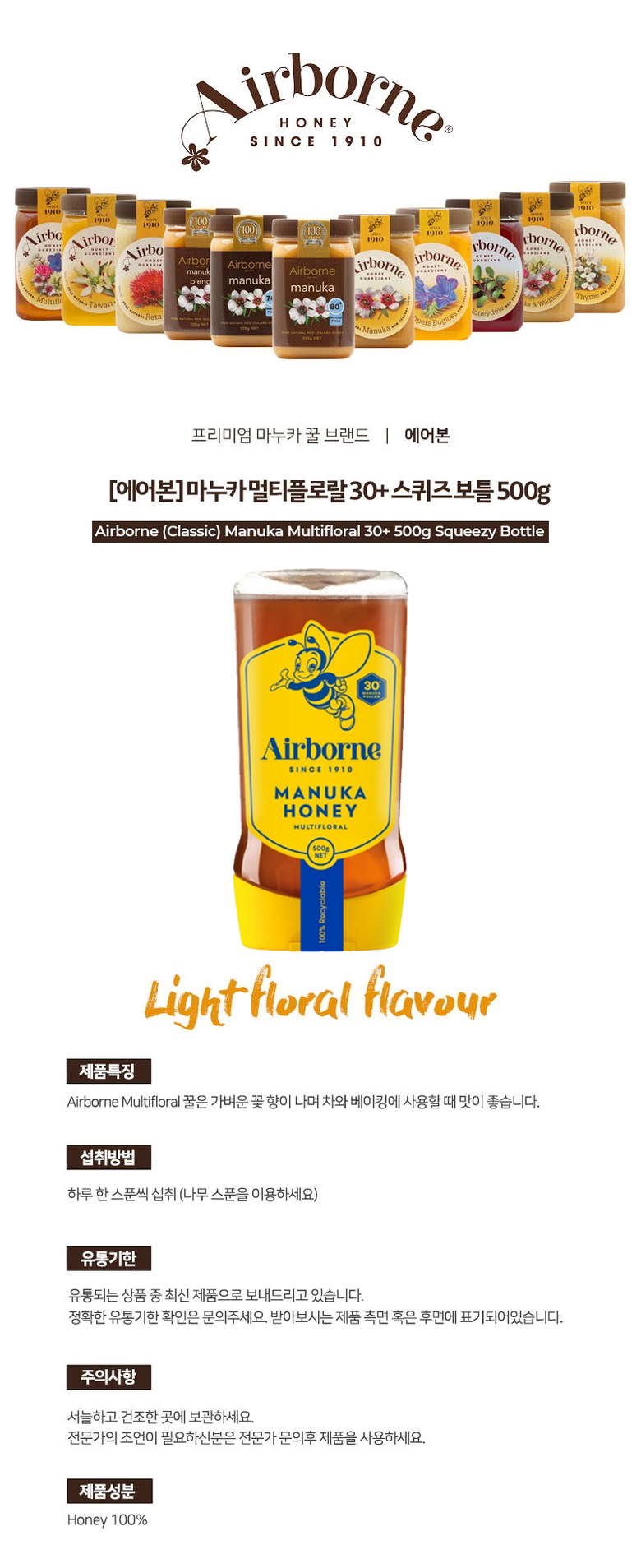 [명절특가] 에어본 마누카 멀티플로랄 30+ 스퀴즈 보틀 500gON SALE