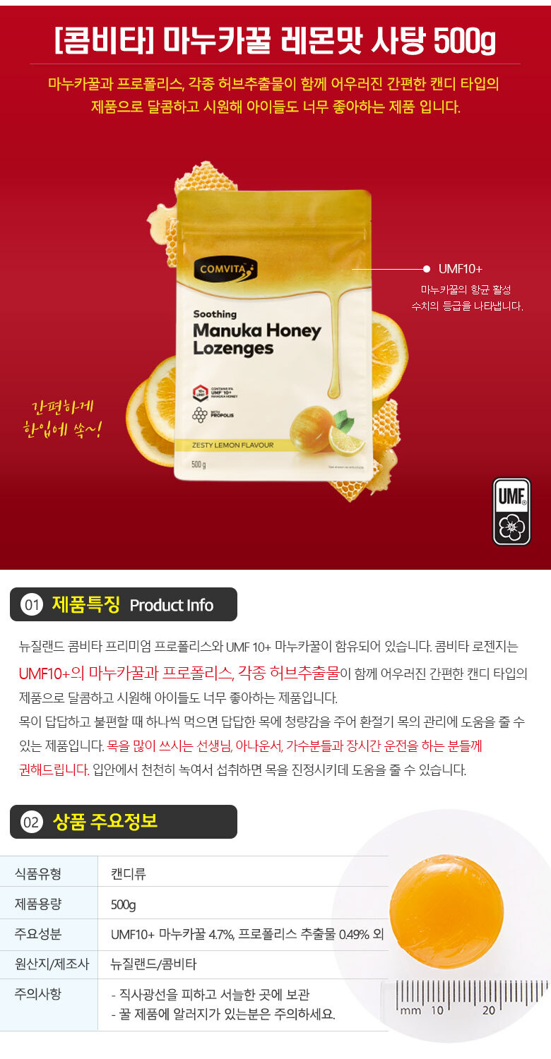 [명절특가] 콤비타 마누카꿀 레몬맛 사탕 500g 3개ON SALE