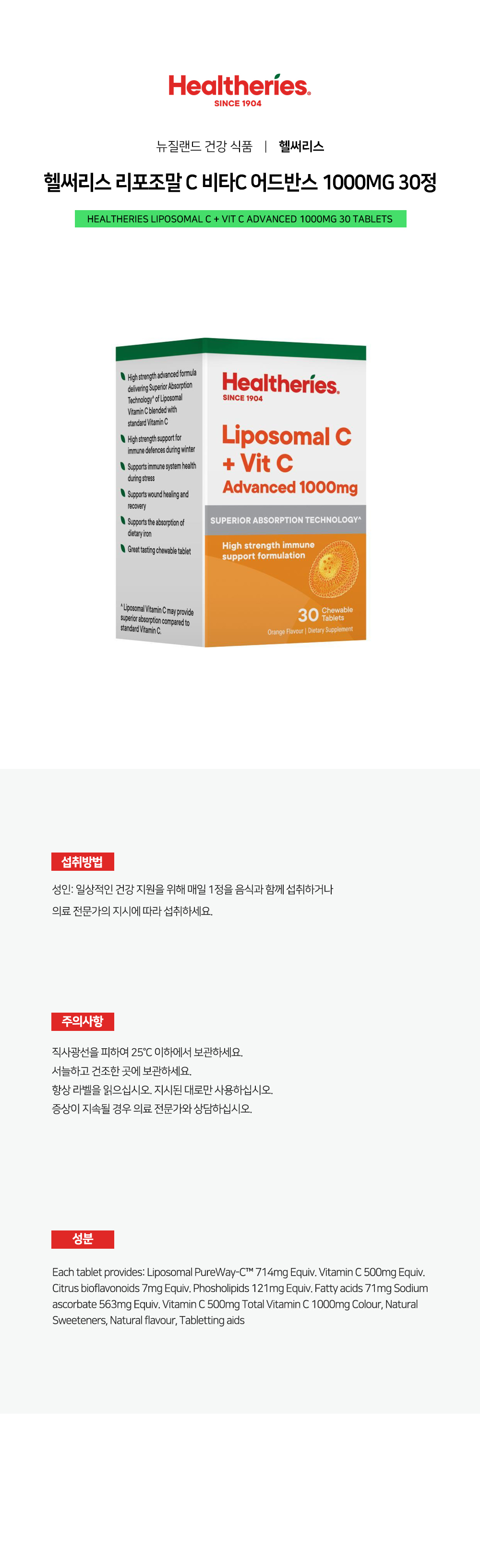 헬써리스 리포조말 C 비타C 어드반스 1000mg 30정NEWON SALE