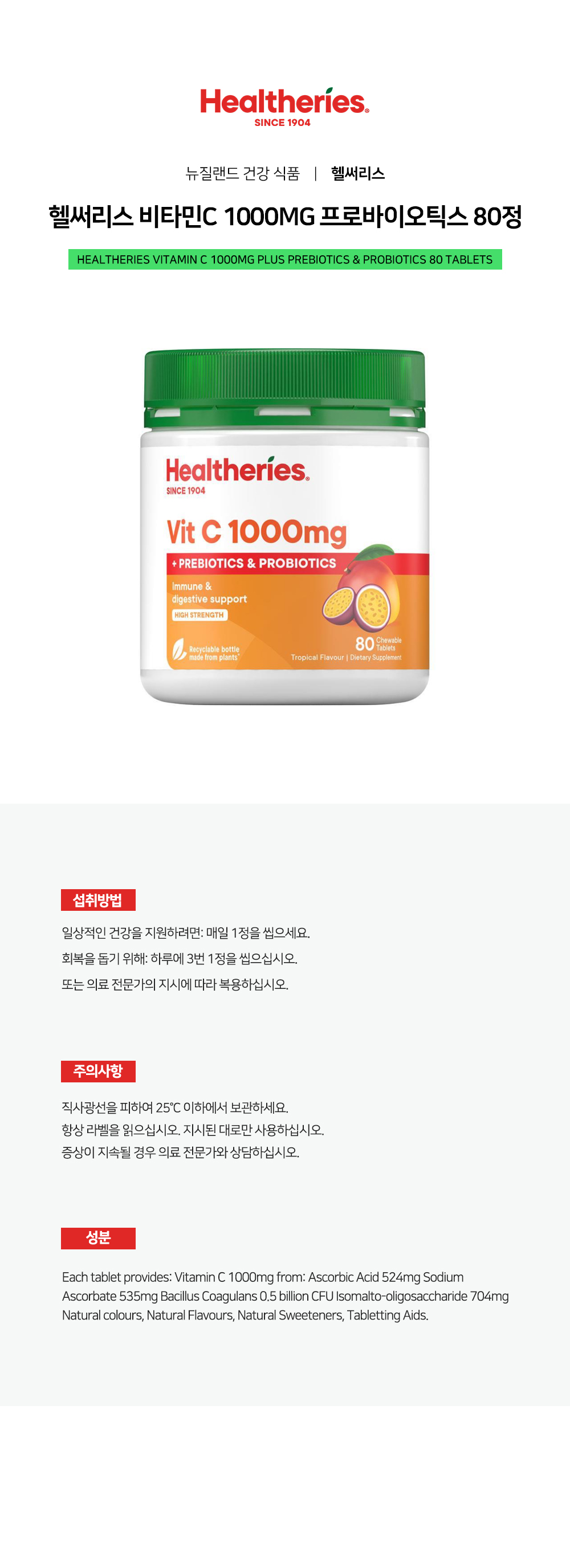 헬써리스 비타민C 1000mg 프리바이오 프로바이오틱스 80정NEWON SALE