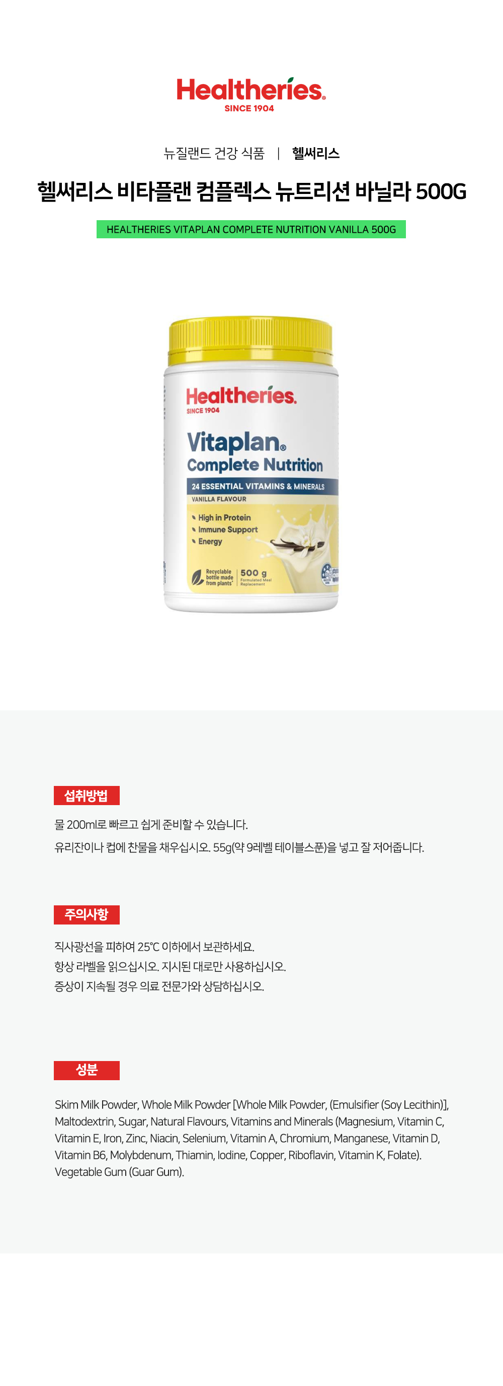 헬써리스 비타플랜 컴플렉스 뉴트리션 바닐라 500gNEWON SALE