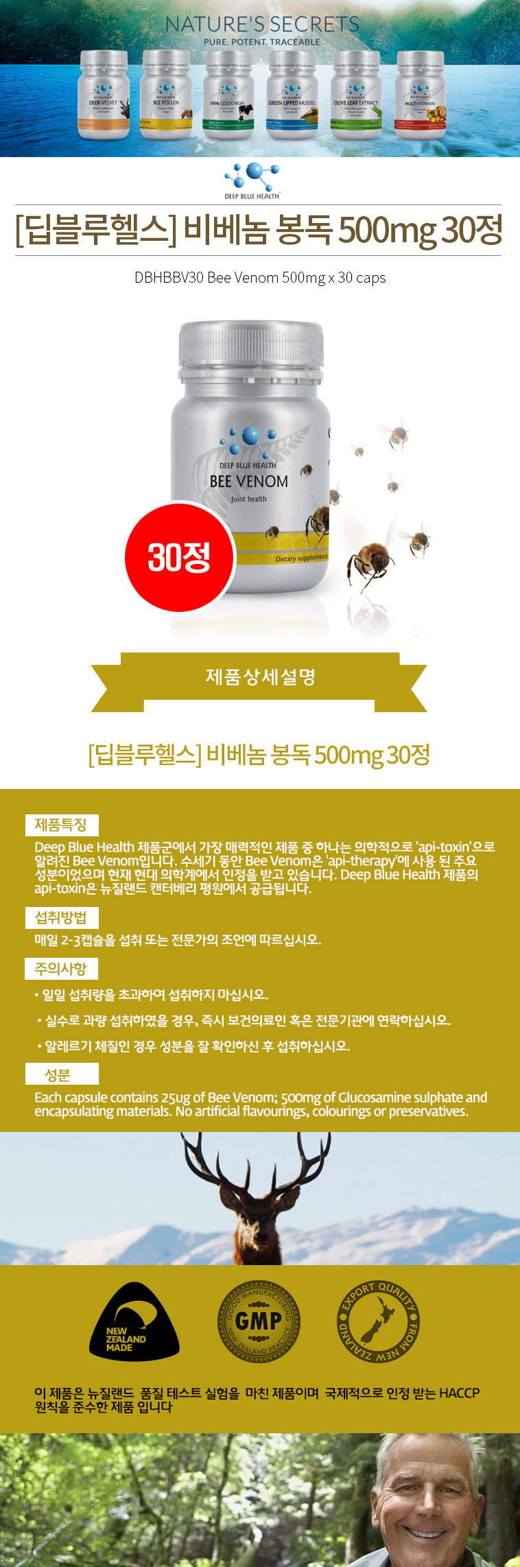[딥블루헬스] 비베놈 봉독 500mg 30정