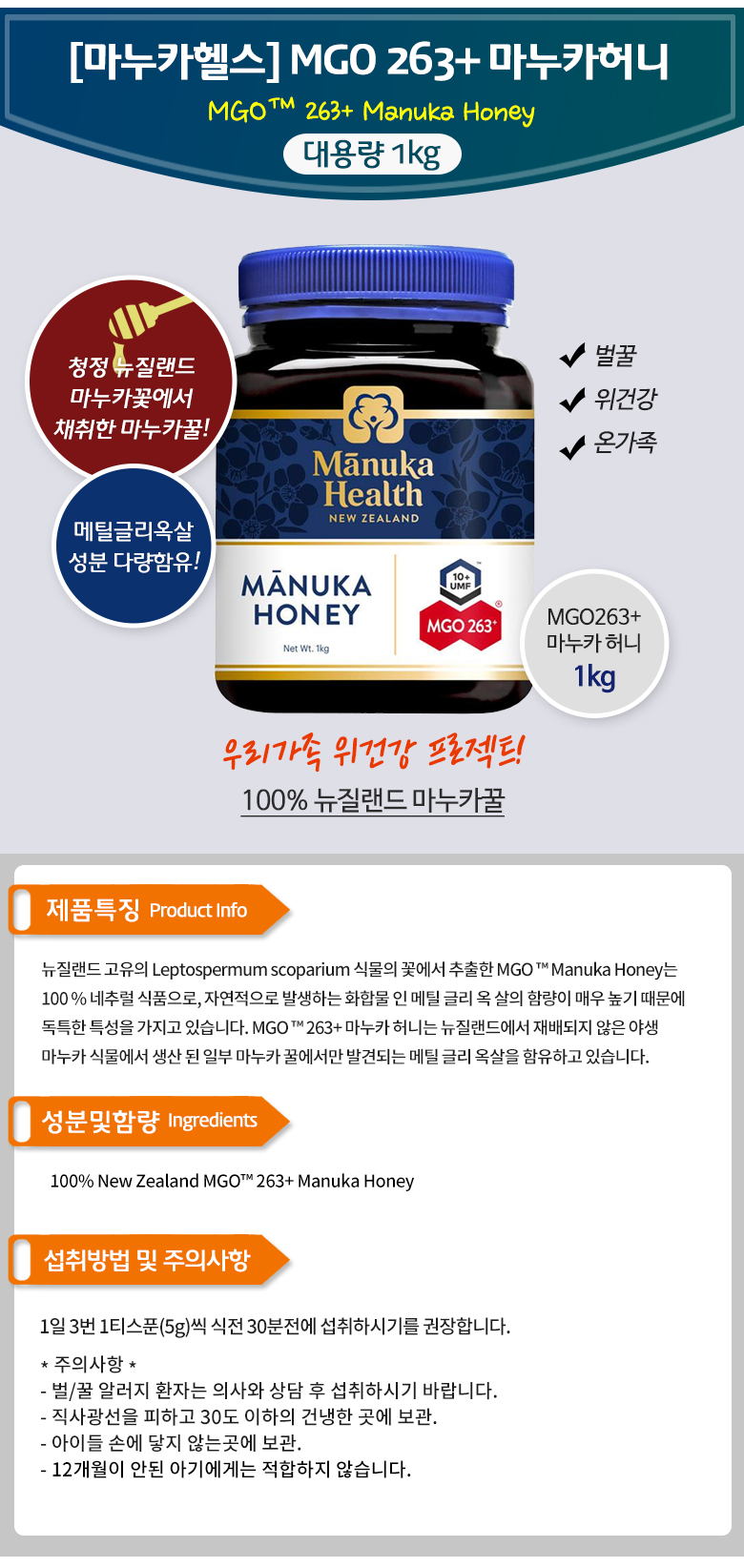 [마누카헬스] MGO263+ 마누카꿀 1kg