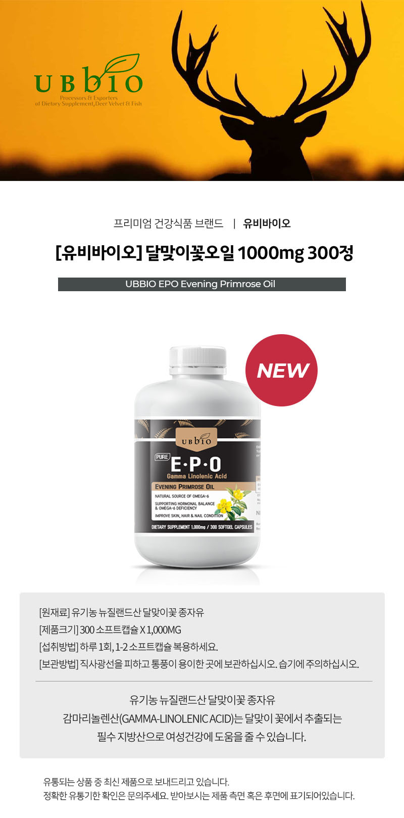 [유비바이오] 달맞이꽃오일 1000mg 300정